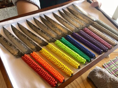 そして、お肉用のナイフは人吉の蓑毛鍛冶屋のもので、好きな色のナイフを選ばせてもらえます。