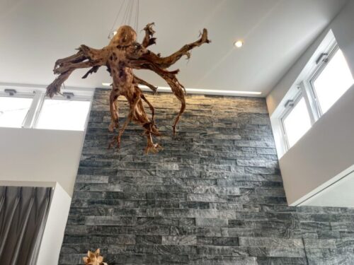 店内に入ると、エントランスの天井には大きな木の根っこ!