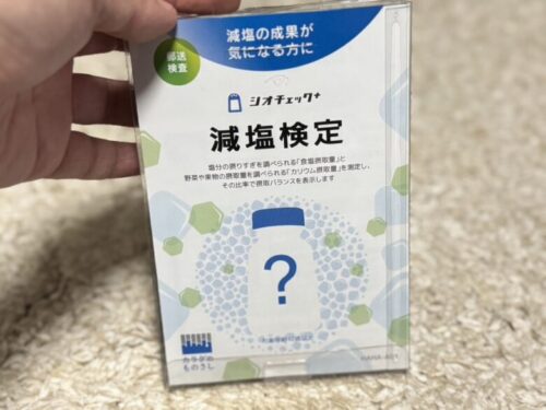 減塩検定キット。尿をとって体内に含まれている塩分濃度を測ります。