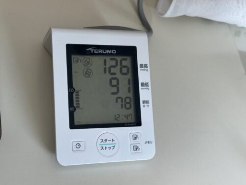 ついでに血圧も測りました。うわぁ、何にも気にせず今まで通りの食生活続けてたら130超えるなぁ。