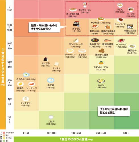 ↑のバランスマップを見ても分かるように塩分(ナトリウム)多めな食べ物の代表格ですねぇ。