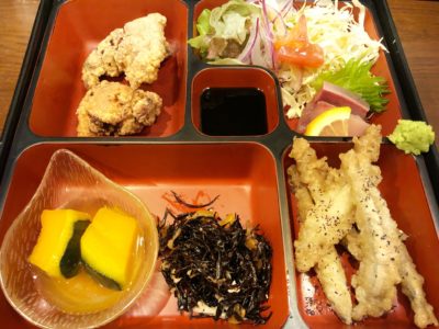 せっかくなので、別のメインも紹介!今度は鶏の唐揚げときびなごの唐揚げです。どちらも揚げたてて熱々。それなのに油っこくなくジューシーでした。