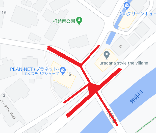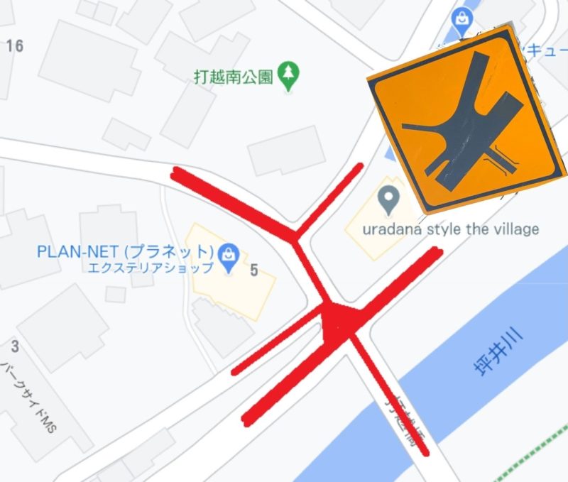 なんとなく察しが付きますが、どうやらこの交差点かなり複雑な変わった形をしています。