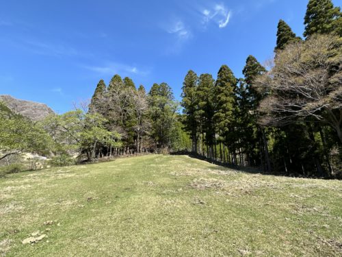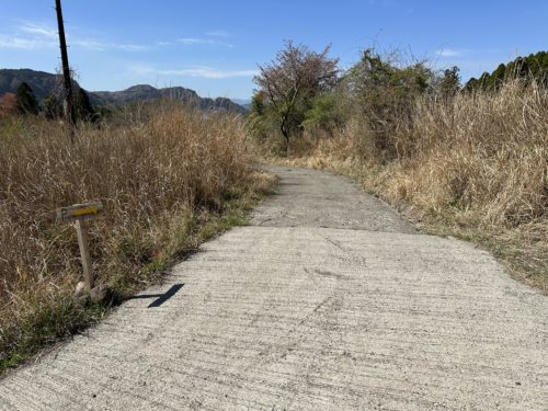 この丘の先に登山口があります。牛のフンもたくさんあります。