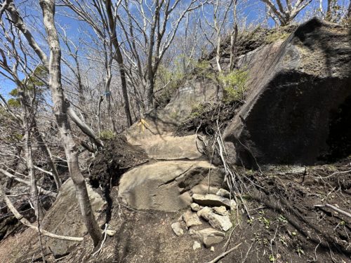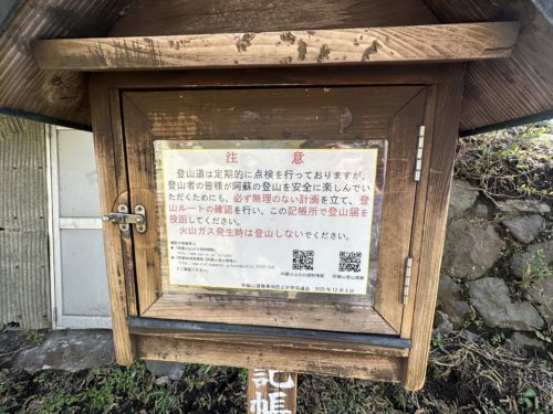 登山道ではない方向には大きく×と書いてあります。間違えないように進みましょう。