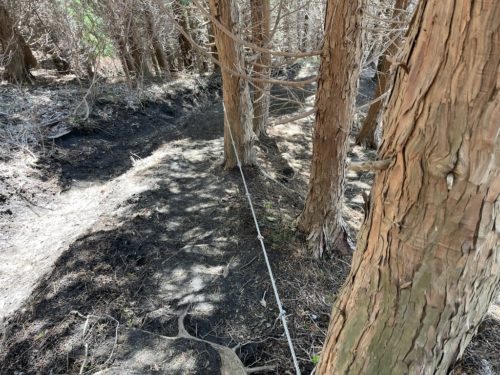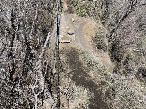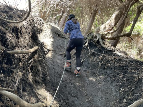 アキレス腱伸びっぱなしだし、膝も太もももガクガクしてくるので、木々やロープを掴みながら登っていきます。