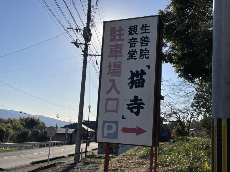 お寺の案内看板にも、しっかり「猫寺」と書いてあります。