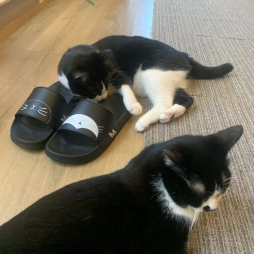 お話を聞いている間にも私や店長さんにゴンゴンと猫チャンが体当たりしてきます。可愛い。