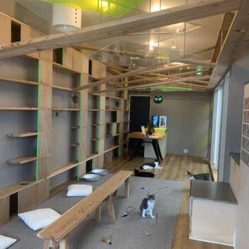 人が好きな猫は人に構われ、ゆっくりしたい猫には個別の空間がたっぷりある…。