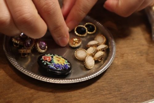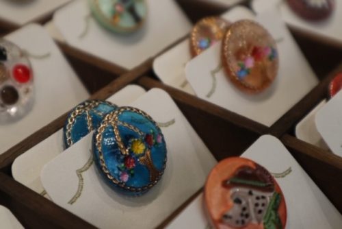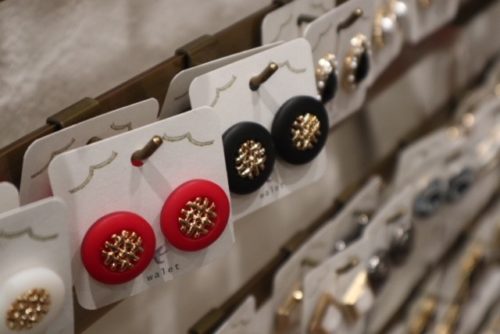 こちらはボタンのピアスやイヤリング。沢山ありすぎて滞在時間がえらいなことに!