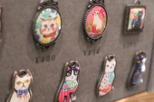 こちら、「猫とボタン」は益城町で連日大人気の「walet」さんの姉妹店になるそうです。主にボタンパーツと猫雑貨を扱っておられます。オーナーさんが「いつか猫の雑貨だけを並べたいな」という想いがあり、こちらがオープンしたそうです。