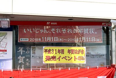 11月1日(木)に、2019年(平成31年)用の「お年玉付き年賀はがき」が発売!それに合わせて、熊本中央郵便局前で「年賀ハガキ発売イベント」が開催されました!