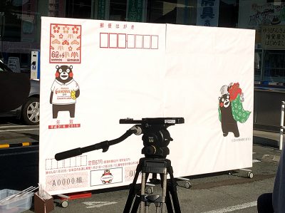 発売イベントの中央郵便局前には、「寄付金付き絵入り年賀ハガキ(地方版)」の絵柄モチーフともなっているくまモンが登場!