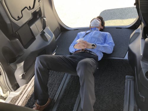 2列目シートはこんな感じ。何がどうなっているのかさっぱりですが、スライドは前後はもちろん左右にもなんか動いてました。