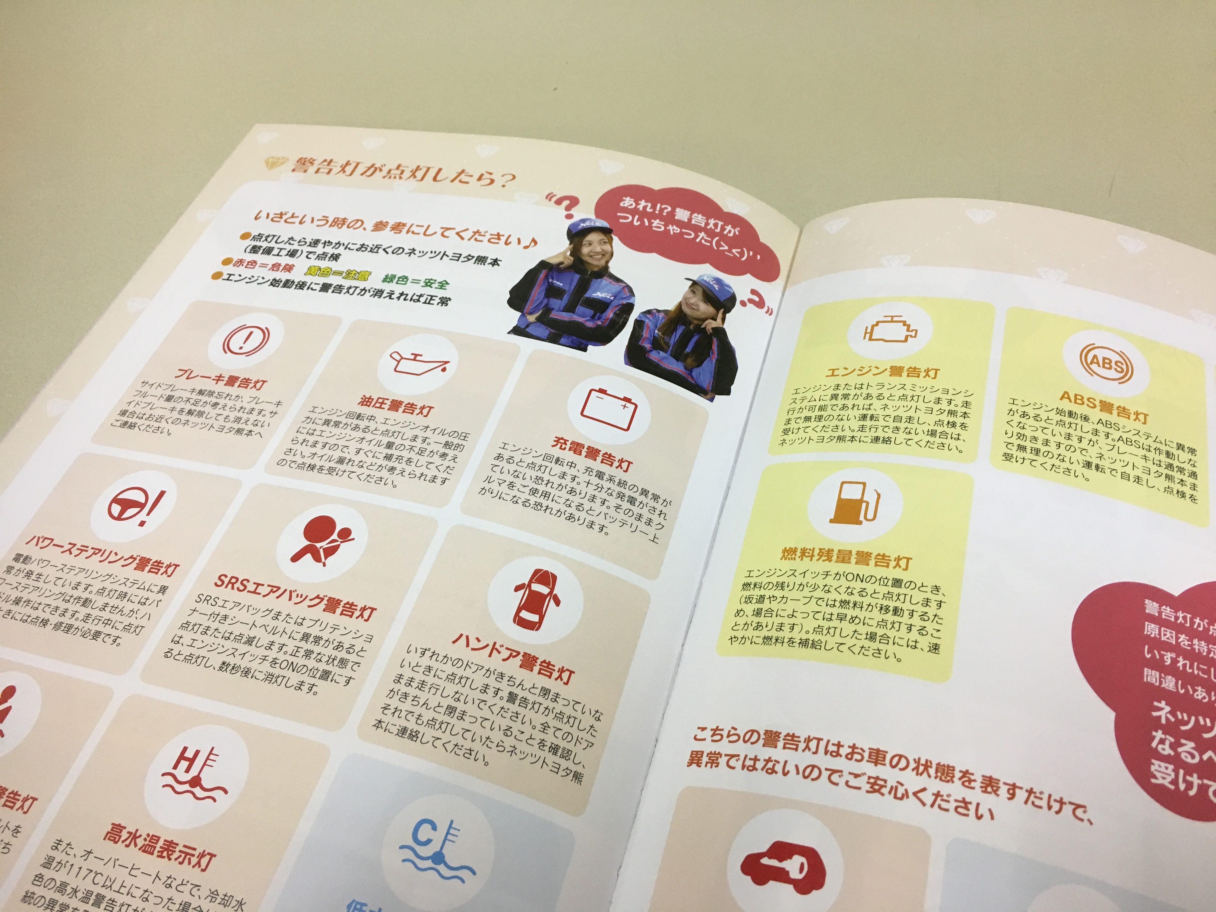 この冊子は「ネッツくまもと」の女性社員を中心に構成された「LINK-S(リンクス)」のメンバーたちが、もしものトラブルの際に役立つものを…! と制作したものだとか。