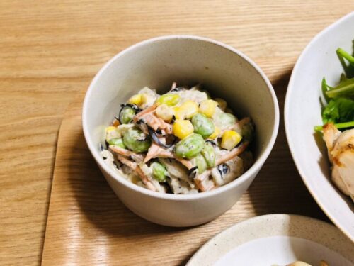 枝豆やコーンが入っていて、食感が楽しい一品です。