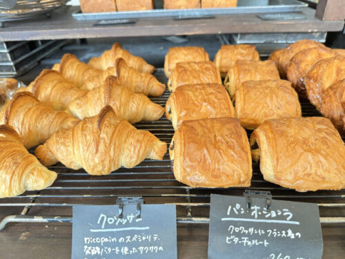 パリパリ生地のクロワッサン(210円)とチョコレートが入ったパンオショコラ(260円)に