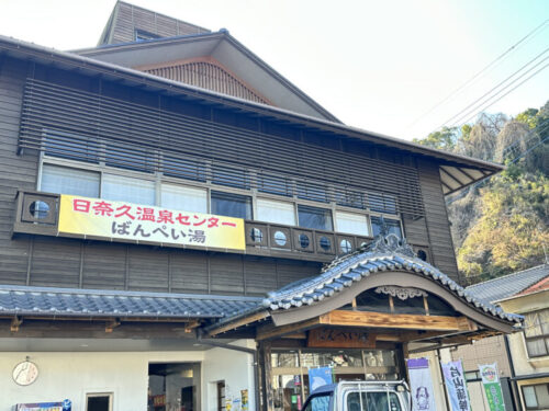 八代市内から車で20分ほどの場所にある、日奈久温泉センター「ばんぺい湯」にやってきました。