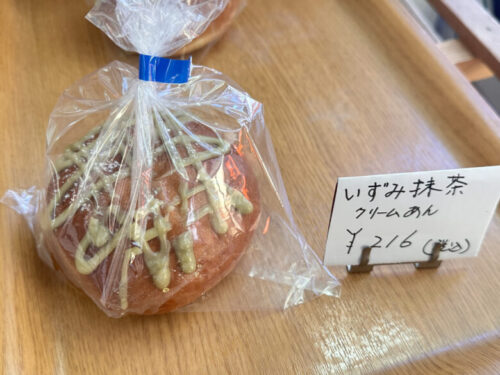 中にたっぷりといずみ抹茶のクリームが入っています。甘すぎずちょうど良い甘さのフワフワパンでした!