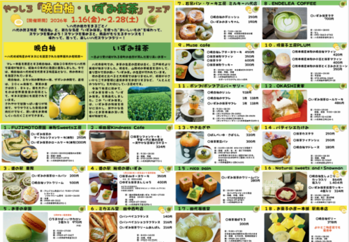 フードバレーやつしろでは、「やつしろ晩白柚・いずみ抹茶フェア」が2月28日(土)まで開催中です。