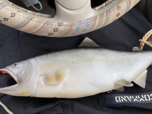 メアリーマスクと思って掴んできたモノは、先日北海道展で買ったシャケのバッグ。。