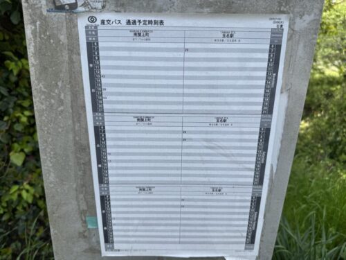 バスが来るのは一番多くて1日3本です。すっかり車社会という事もあるのでしょうが、圧倒的にこの辺りは人が少ないのでしょう。この時刻表を見て、なんとなく寂しい気持ちになってしまいました。