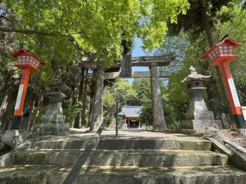 「日本最後の仇討ちの地」を目指す時あたり、マップを見ると、このように神社の奥にマークが付いているので、まずはその「石貫熊野座神社」(いしぬきくまのざじんじゃ)を目指しました。