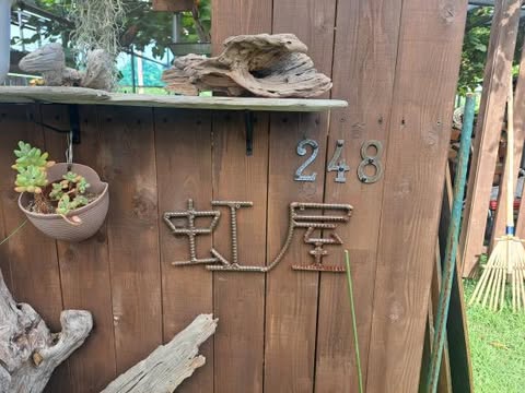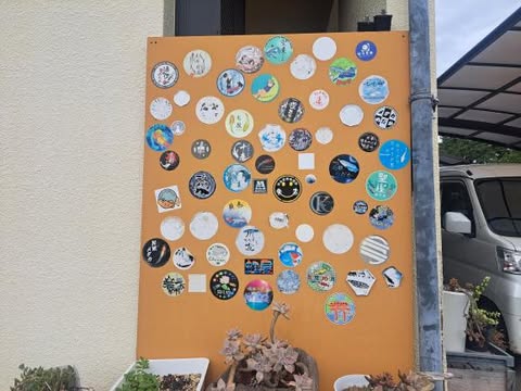 一軒家の前の壁にはたくさんのメダカステッカーも貼ってありました。