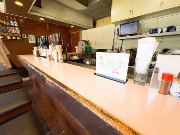 お酒にもぴったりの料理にアルコール、昭和の面影を残したレトロな空間で夜は一気に大衆酒場に。