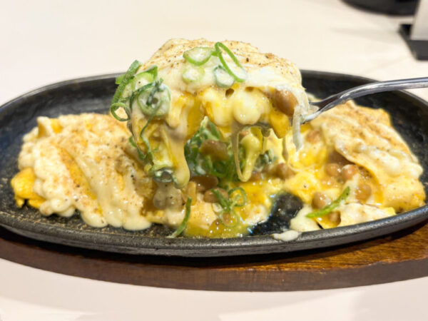 まずは、オーナーさんおすすめの納豆チーズオムレツ。