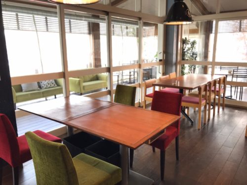 店内は、ガラスの窓に覆われており、明るくくつろげる雰囲気。