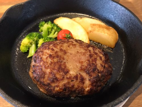 写真ではわかりづらいですが、熱々の鉄板で運ばれてきたハンバーグの中央から、肉汁が溢れています。