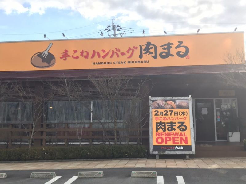 尚絅大学近くの「夜カフェ⑥」のあとにオープンした、オレンジの看板が目を引く「手こねハンバーグ 肉まる」。手作りのハンバーグを、がっつり楽しめるお店です。