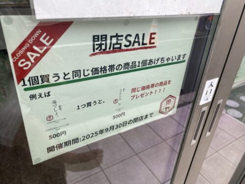 店内商品がなくなり次第、9月30日を待たずしてセール終了、そして閉店となります。