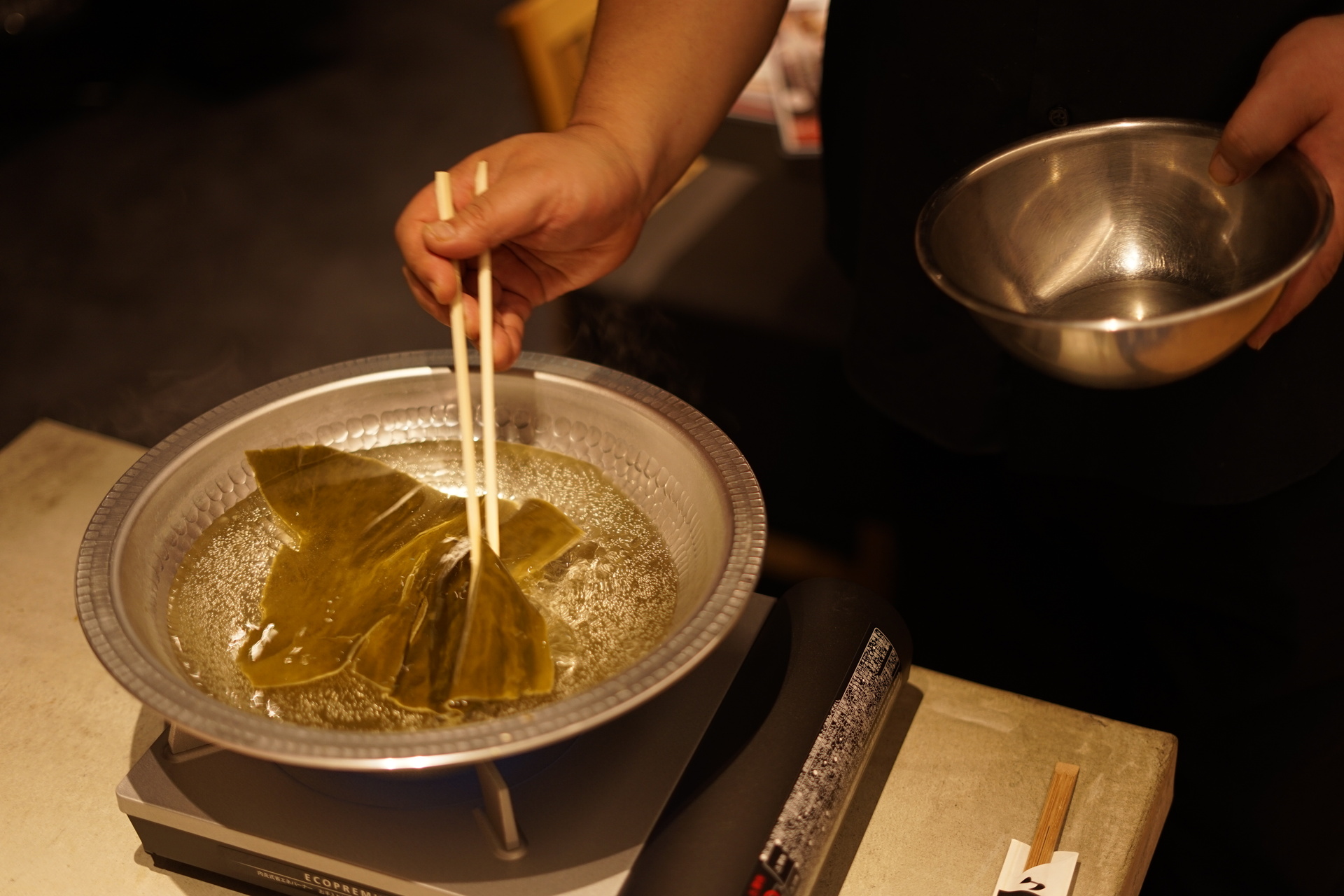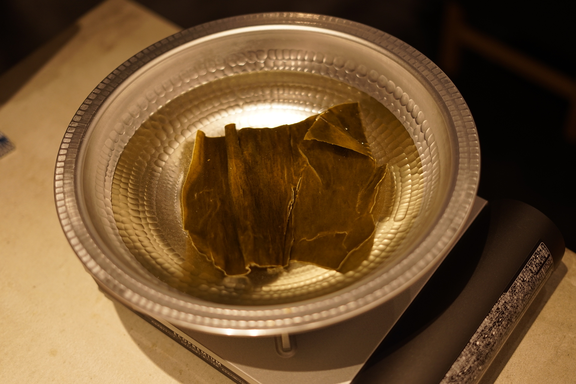 水の色が黄金に変わり、昆布のいい香りがしだし、昆布自体も柔らかくなったのは、この鍋で時間にして3分くらいでしょうか。