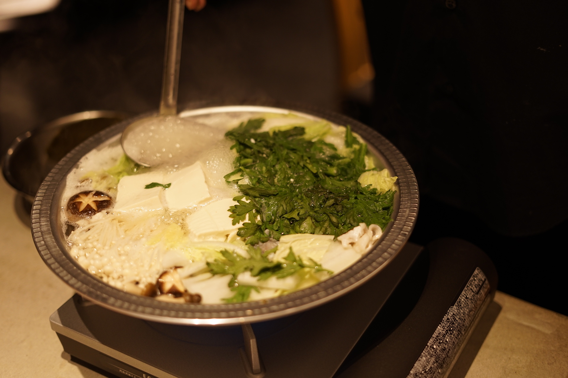 灰汁を取りつつ、葉物野菜と豆腐を入れたらはい完成!