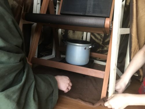16種類ものハーブを入れたお鍋を沸かして、その上に座ってもらいます。