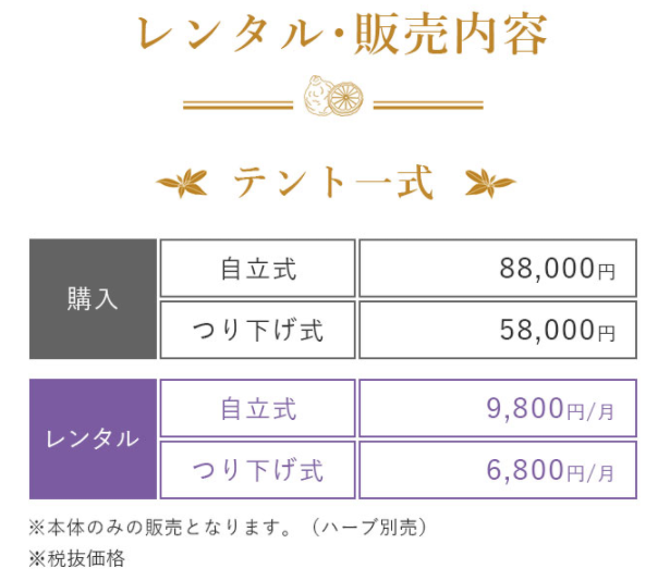 お試しハーブお付けします。熊本市内は出張設置費・撤収作業費は無料!!!(市外の方は要相談)