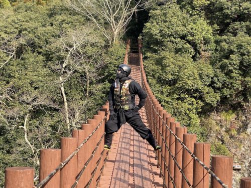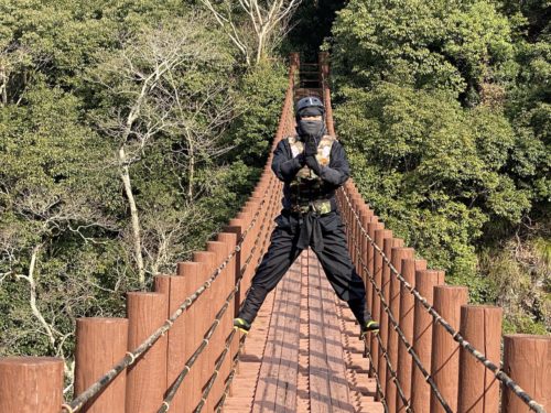 という訳で、肥後ジャーナルの山田を呼びつけ、氷川町の立神峡にある「忍者体験NINJA/火之国屋」に行ってきました!!