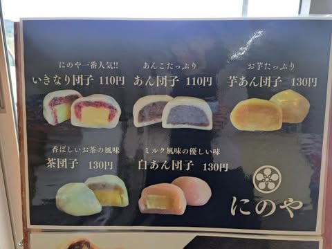 あんこと芋が入った通常のいきなり団子をはじめ、5種類の団子を販売しています。