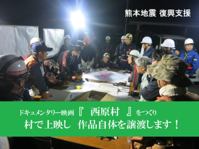 映画「西原村」プロジェクトは、映像ディレクターの久保理茎(くぼ りけい)氏が、被災地である西原村のことを広く、長く知ってもらおうと取り組みをはじめました。震災後から2年間、西原村の記録を映画として残し、著作権ごと村に譲渡するというプロジェクトです。