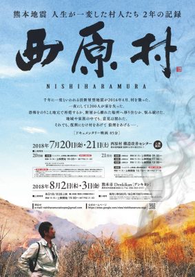 熊本地震により甚大な被害を受けた西原村。地震で住む家を失ったり、仕事を失ったり…。苦悩しながらも復興へと歩み続ける西原村の人々を追ったドキュメンタリー映画が7月に完成。8月2・3日に熊本市のDenkikanにて上映されます。