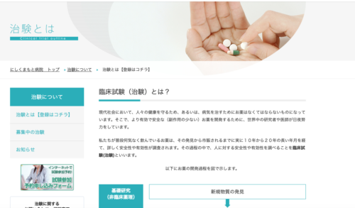 ここで治験した薬がCMで流れると、「あ、あの時の薬だ」ってちょっと嬉しくなったりしますよね。