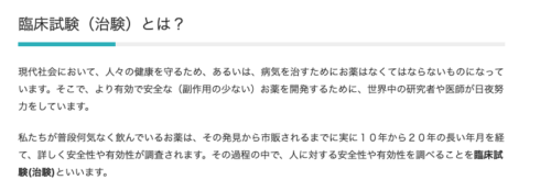 伊藤お医者さんにならなくても、お薬は作れるんだよ。治験っていうのに参加することでね。
