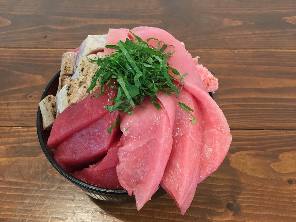 皿からまぐろカツが飛び出た丼や、まぐろ刺しが山のように積まれた丼があるのですが、行って気付きました。以前に取材してたこと。