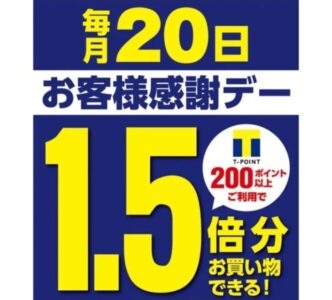 毎月20日がお客様感謝デーなんですが、Tポイント1.5倍。これだけじゃピンときませんが、要は1,000円分のTポイントがありゃ1,500円分の商品が買えるという訳です。