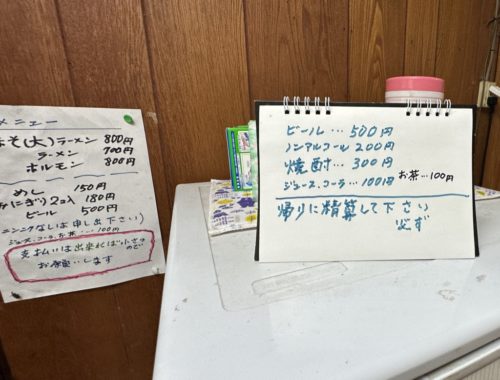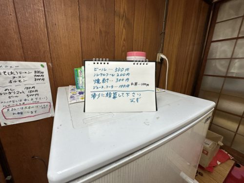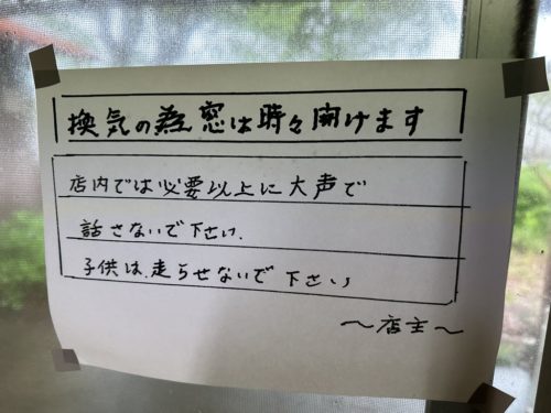 2代目のご主人が手書きで書いてらっしゃるんでしょうか、張り紙が各所に貼ってあるんです。