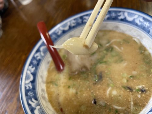 まろやかなでクリーミーな舌触り。後口には豚感と追い打ちをかけるニンニクの風味。