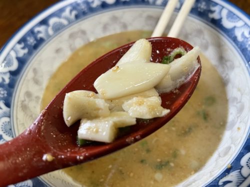 スープを底の方からすくったら、出てくる出てくるニンニク様が。
