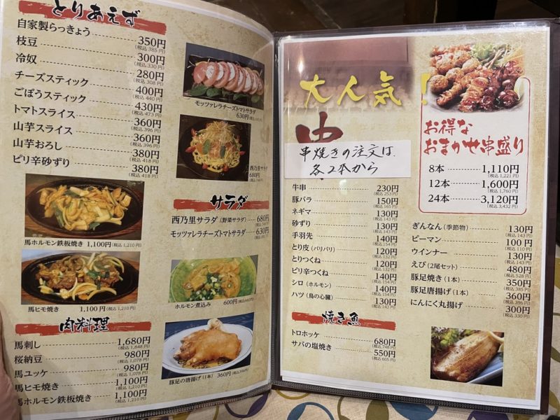 オススメの品や裏メニューなどを加えたら、120種類以上(ドリンク抜き)。